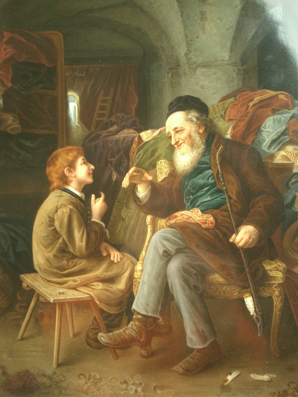 Peinture sur plaque de Porcelaine de Berlin KPM d'après LUDWIG KNAUS