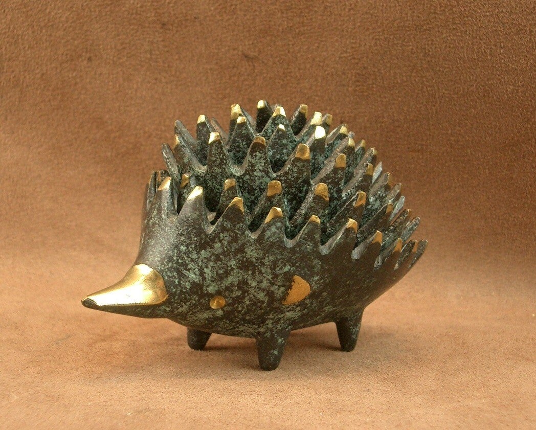 WALTER BOSSE, ENSEMBLE DE 6 CENDRIERS HERISSONS GIGOGNES BRONZE PATINÉ