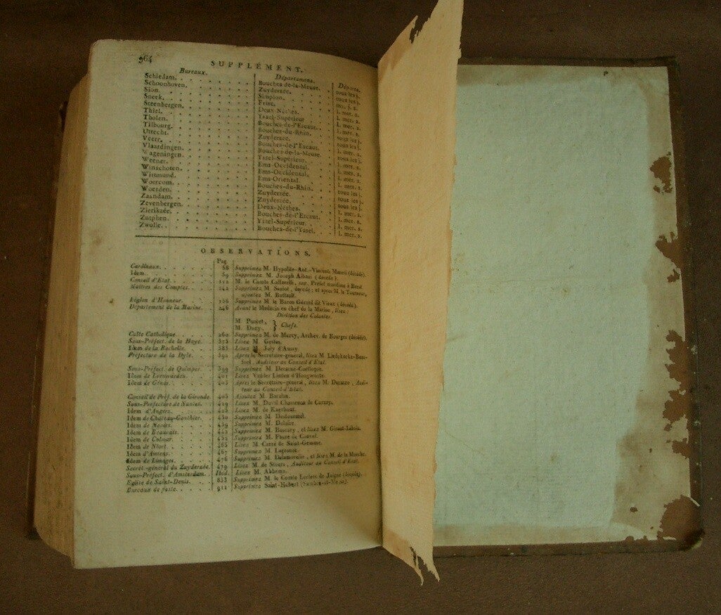 ALMANACH IMPÉRIAL pour l'Année 1811 présenté à S.M. L'EMPEREUR et ROI par TESTU ouvrage relié , reliure plein veau usagée, rousseurs éparses, page de garde déchirée