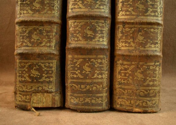 3 volumes IN8.Reliure d'époque plein veau. Dos à nerfs orné avec pièces de titres et de tomaisons.