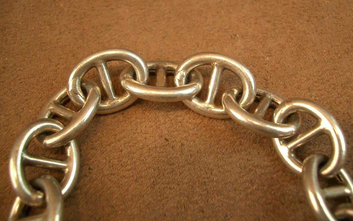Bracelet en argent massif large maille marine
