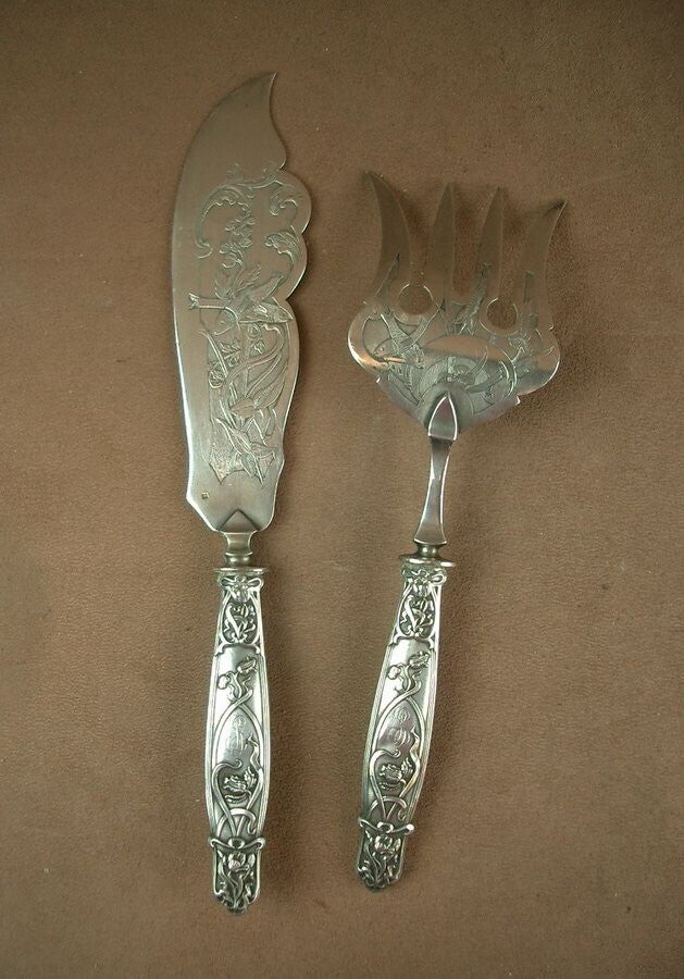 SUPERBE COUVERT DE SERVICE A POISSON ARGENT MINERVE ART NOUVEAU