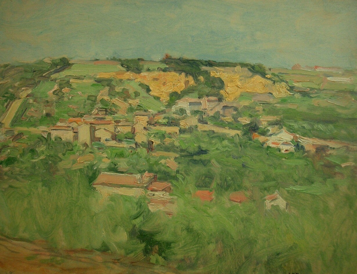 Peinture, huile sur carton, Saint Cyr au Mont d'or, Hameau de la Bussière par Alexandre François Bonnardel (1867-1942)