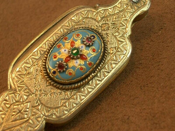 Superbe binocle , lorgnette face à main en vermeil et émaux bressans du XIXe siècle