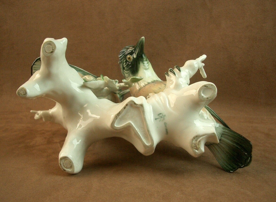 Important groupe en porcelaine de Saxe, Manufacture de Karl Ens, Couple de Geais