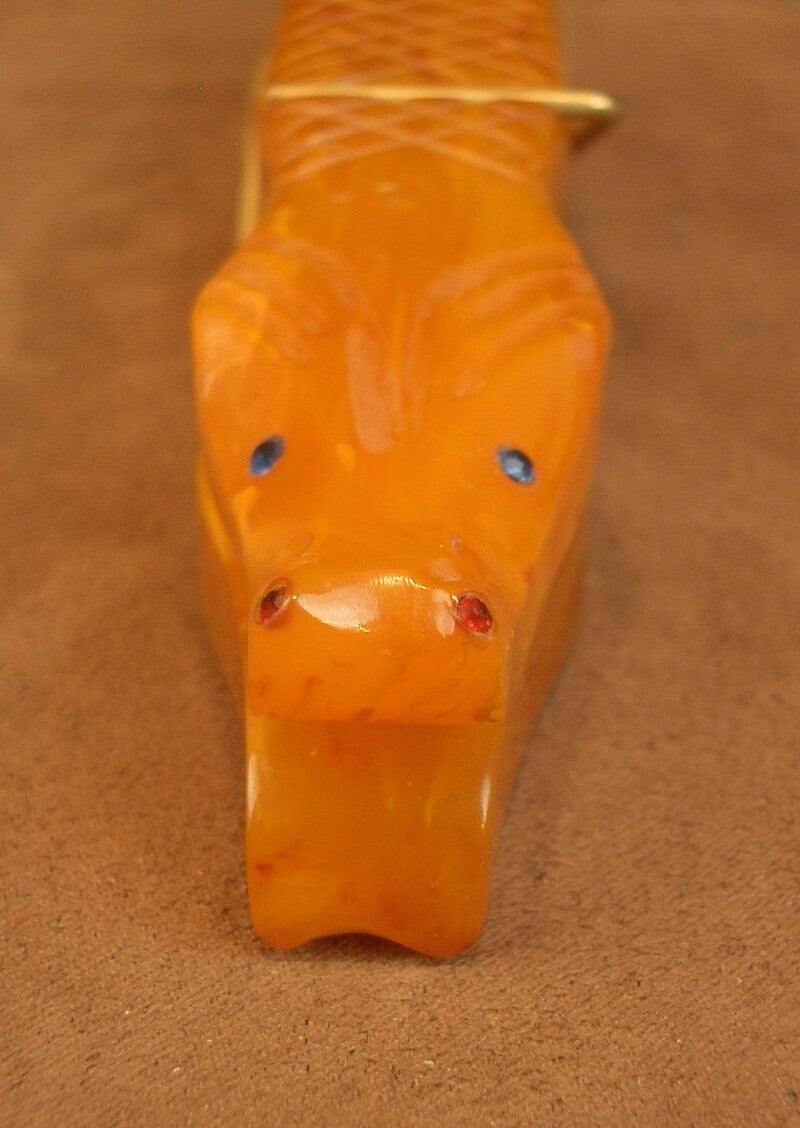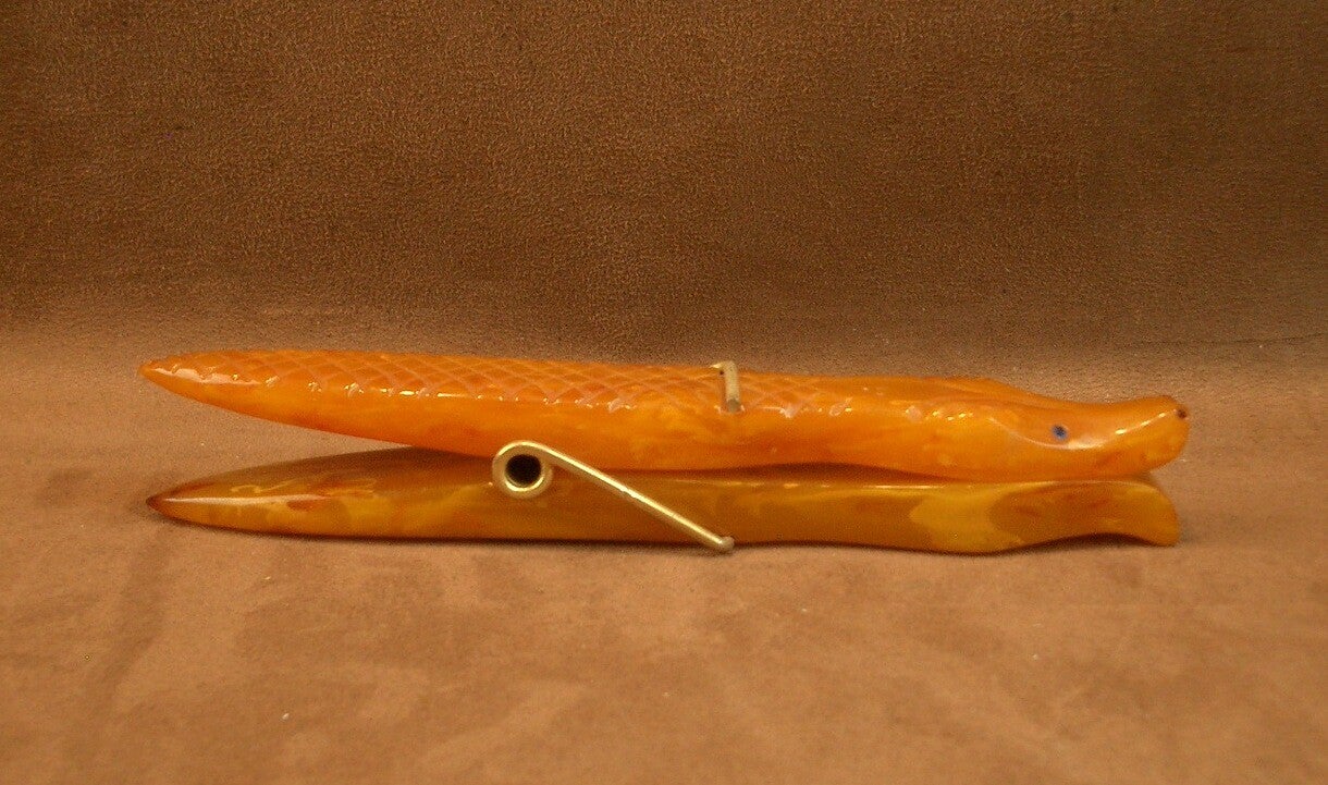 Rare Pince à Courrier en Bakelite sculptée en forme de Crocodile No Amber Catalin