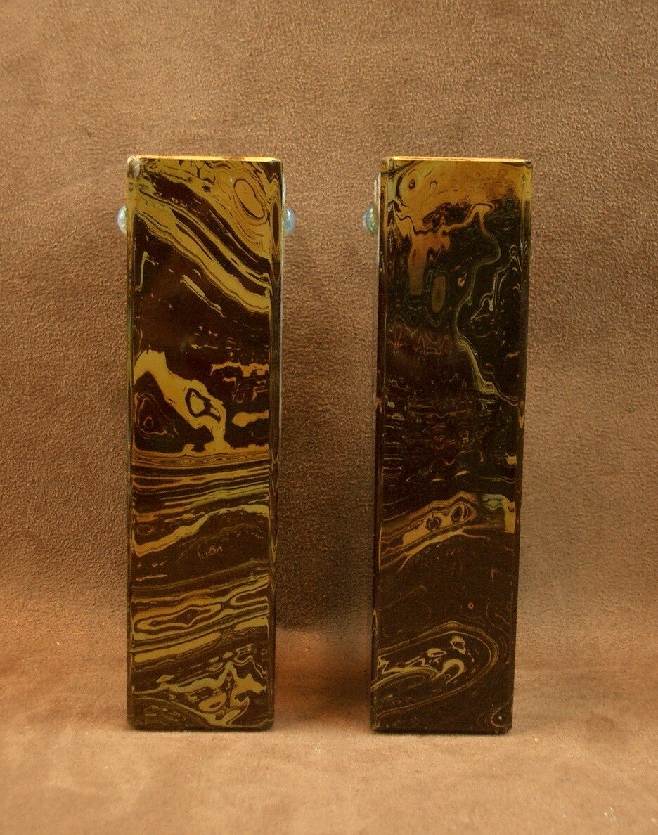 RARE PAIRE DE VASES D'EPOQUE ART NOUVEAU VERRE LITHYALIN IMITANT L'AGATE