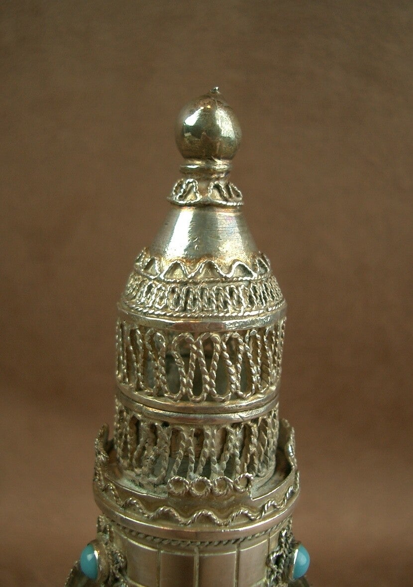 Judaica , Art Juif , Boite à aromates Bessamim en Argent Massif