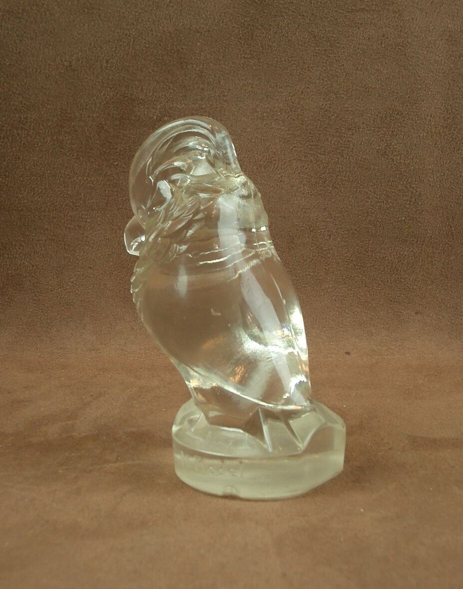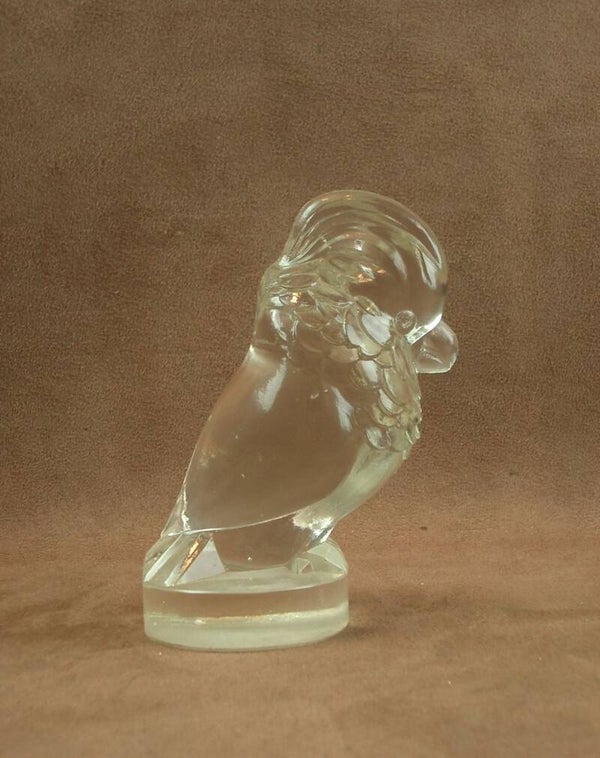 CACATOÈS, MASCOTTE EN VERRE MOULÉ PRESSÉ D’ÉPOQUE ART DÉCO SIGNÉE "M. MODEL"