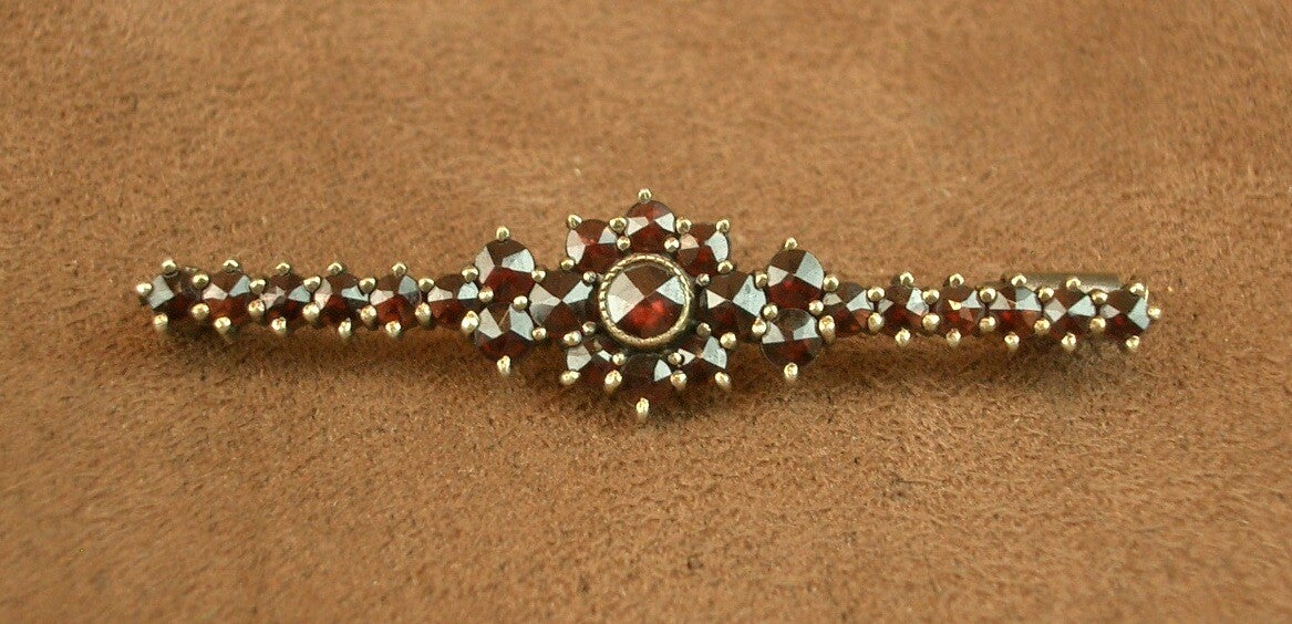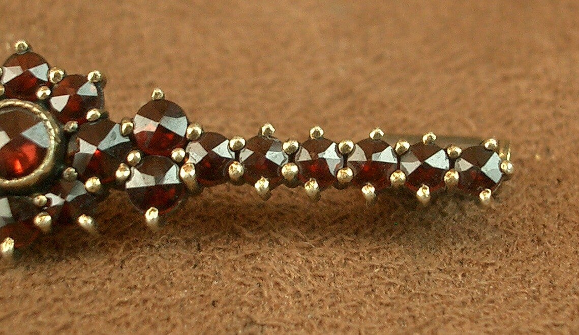 BELLE BROCHE BARETTE ANCIENNE EN VERMEIL, ARGENT MASSIF DORÉ SERTIE DE GRENAT