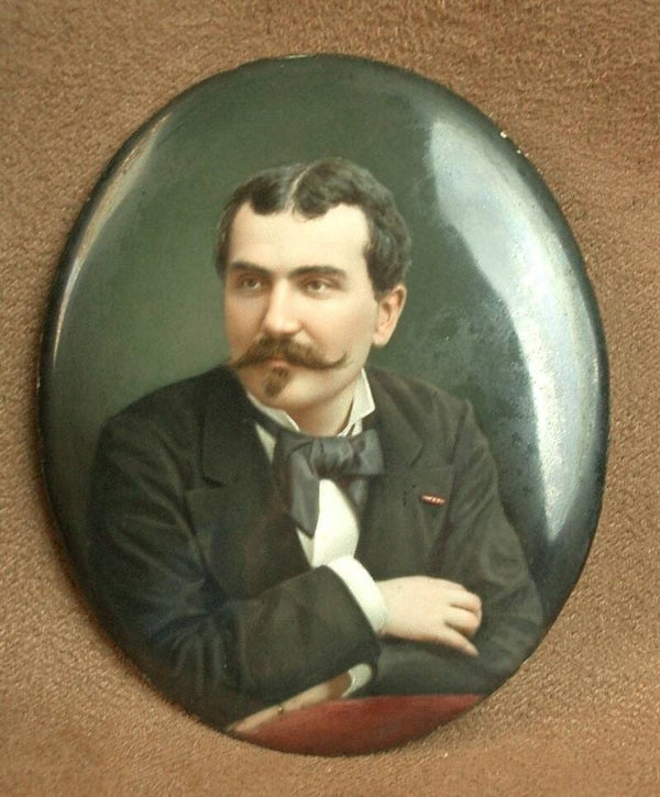 Miniature émail photographique Procédé Mathieu Deroche Portrait d'homme XIXe siècle