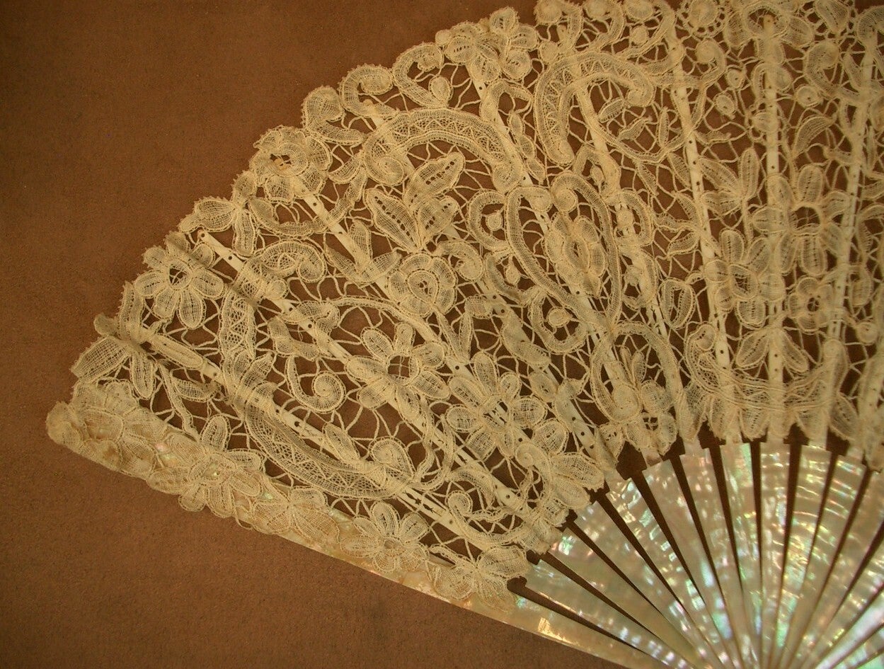 Bel éventail du XIXe siècle en Nacre et dentelle