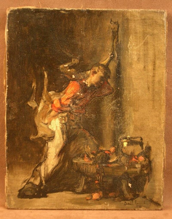 Huile sur toile du XIXe siècle, clair obscur, le petit cuisinier par Joseph Bail 1862-1921