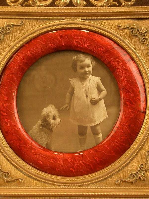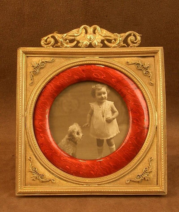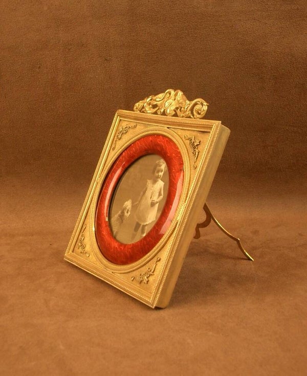 Ravissant cadre porte photo en métal doré et émail guilloché XIXe