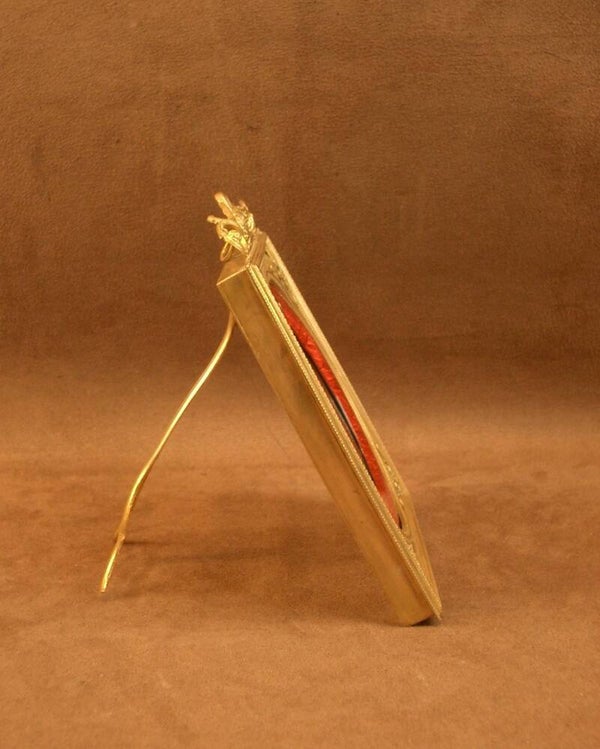 Ravissant cadre porte photo en métal doré et cerclage en émail guilloché