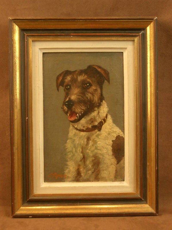 Peinture Huile sur Carton Portrait de chien Fox Terrier XXe siècle