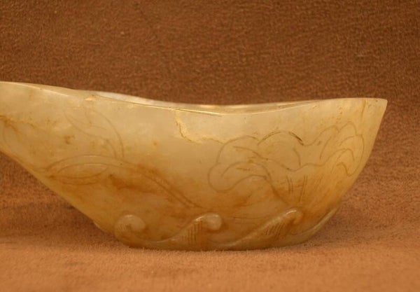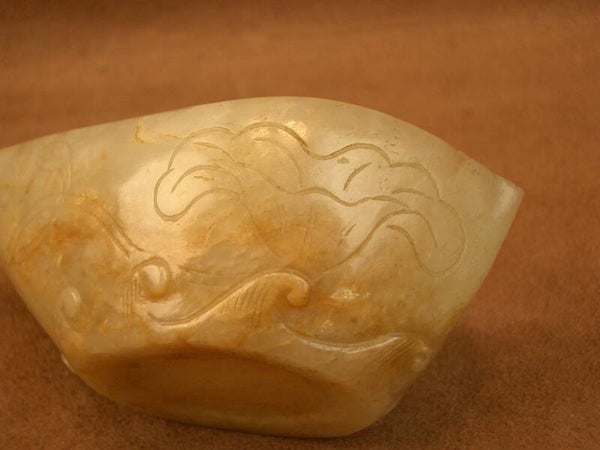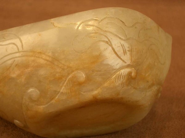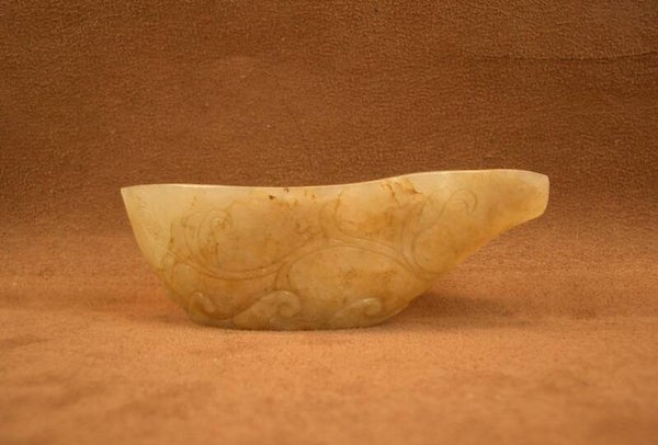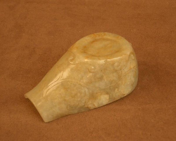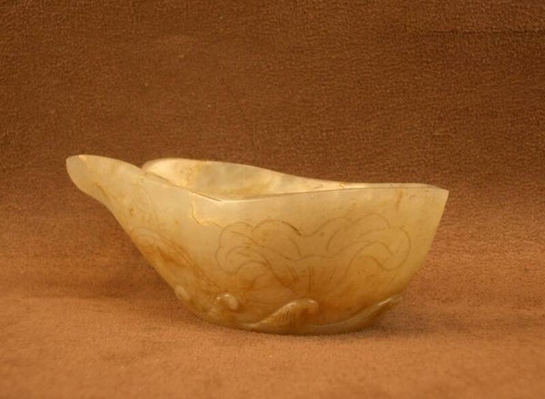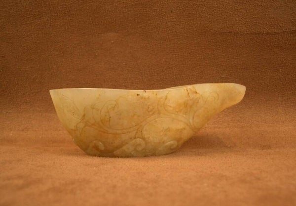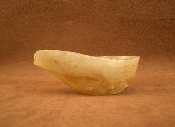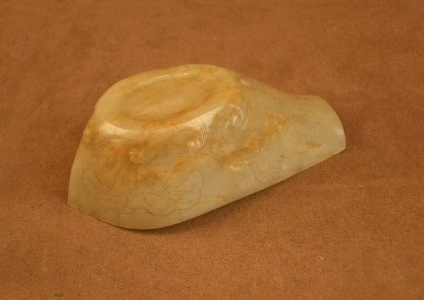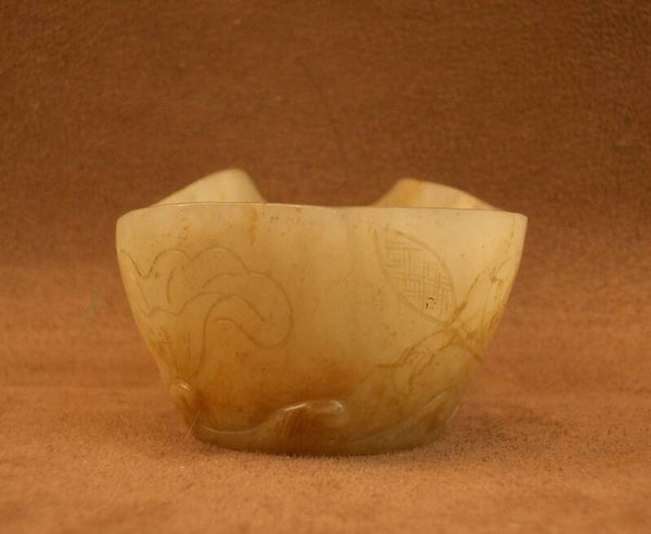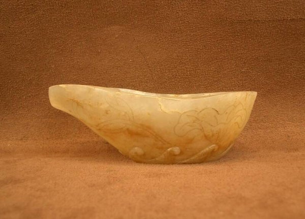 Petite coupe libatoire en jade céladon légèrement tachée de rouille Probablement vers la fin du XIXe siècle