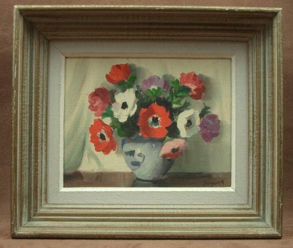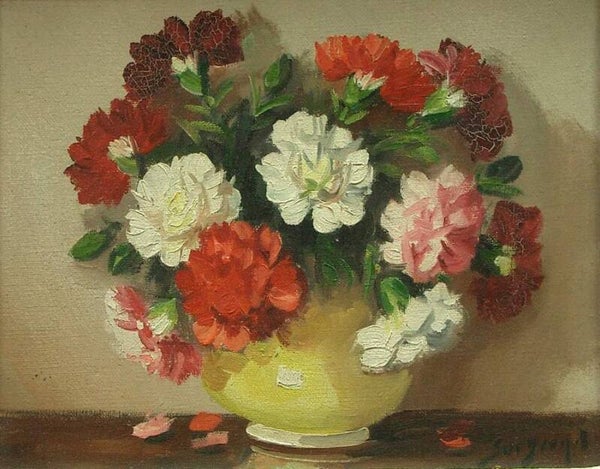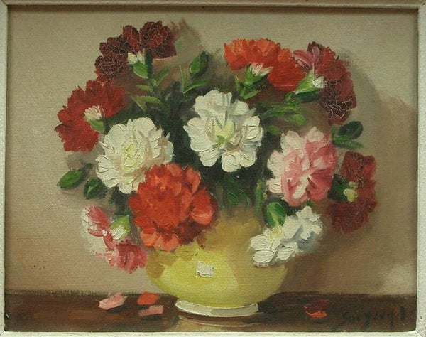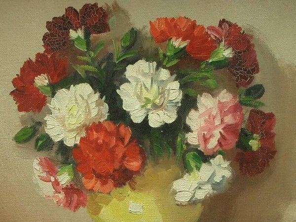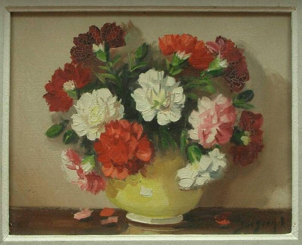 Nature morte aux bouquets de fleurs, oeillets et anémones,