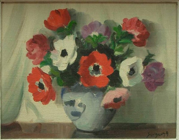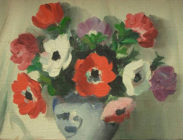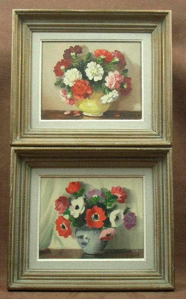 Deux peintures formant pendant, huiles sur toile, bouquets de fleurs, milieu du XXe