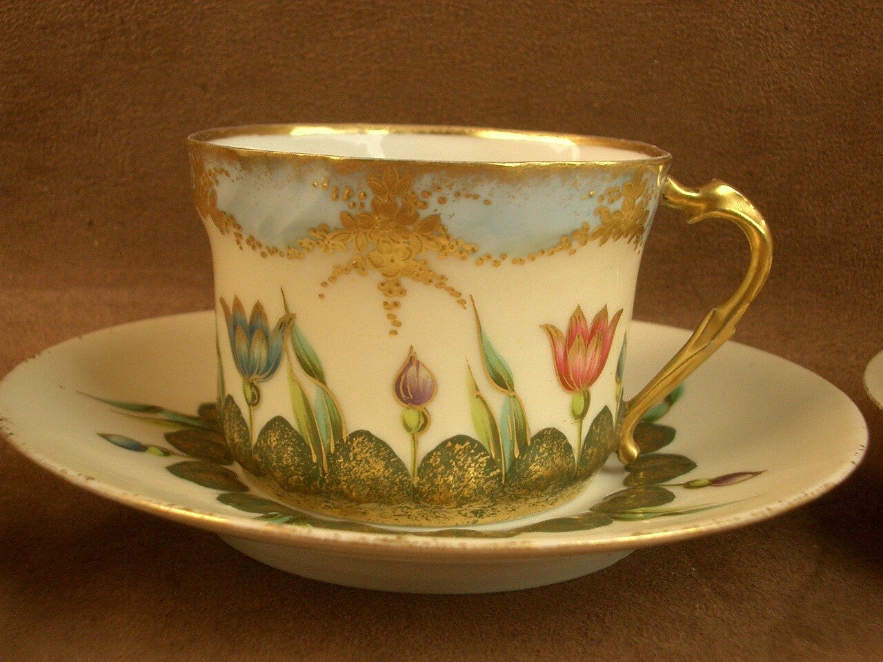 Service à thé ou café tête à tête en porcelaine de Limoges Art Nouveau