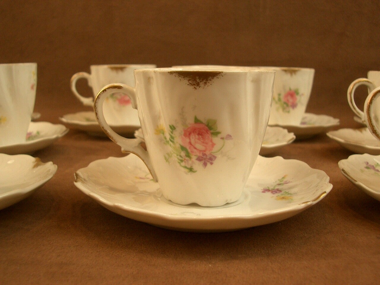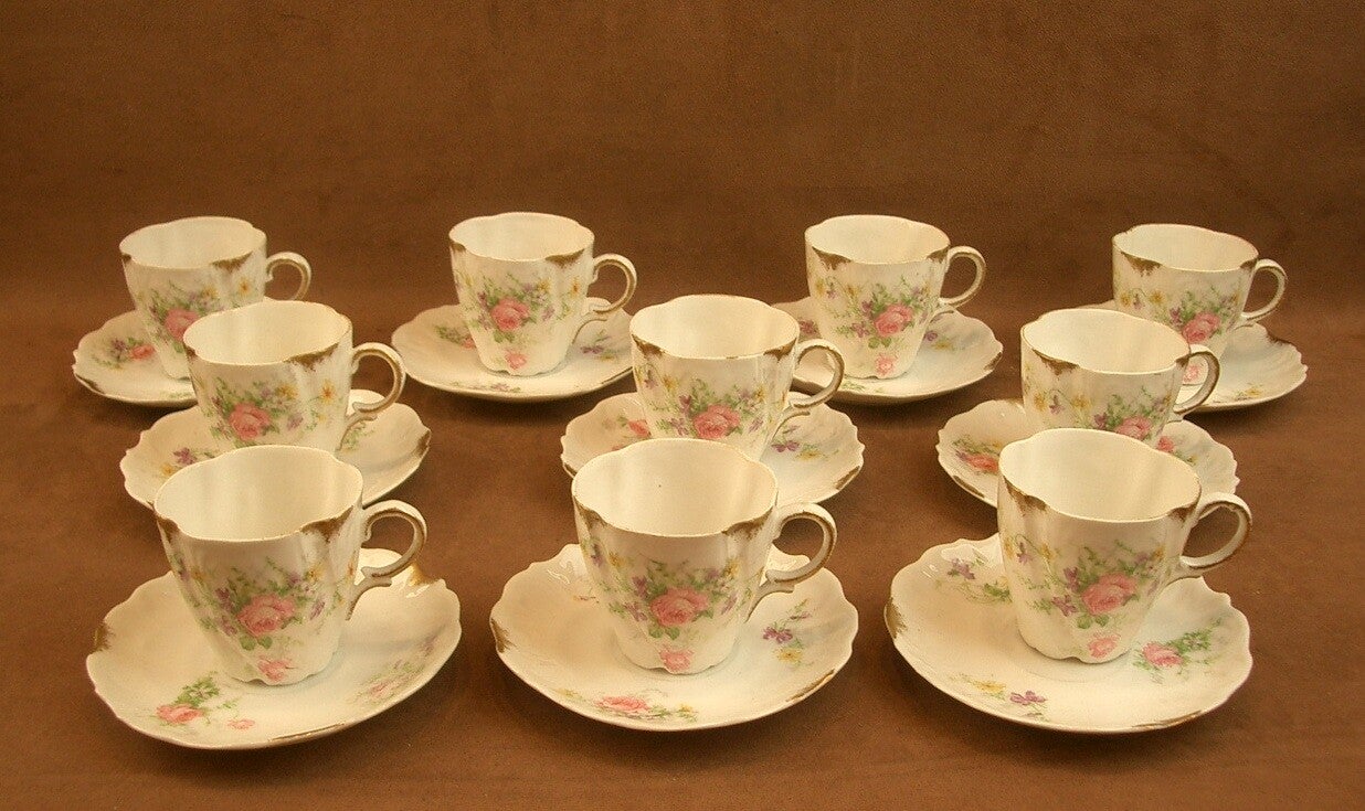 Service à thé ou café en porcelaine de Limoges , décor romantique de roses, début du XXe siècle