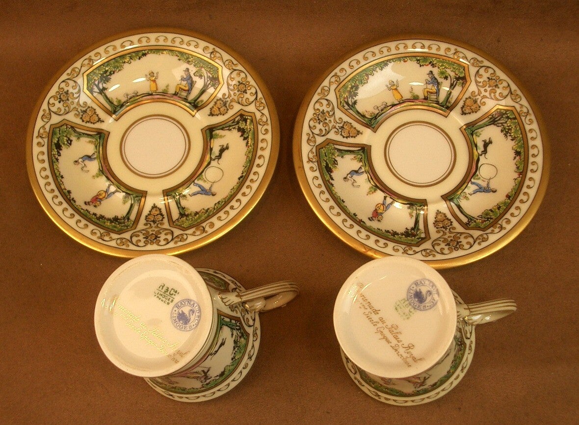 Deux tasses à café en porcelaine de Limoges, Raynaud, Promenade Au Palais Royal