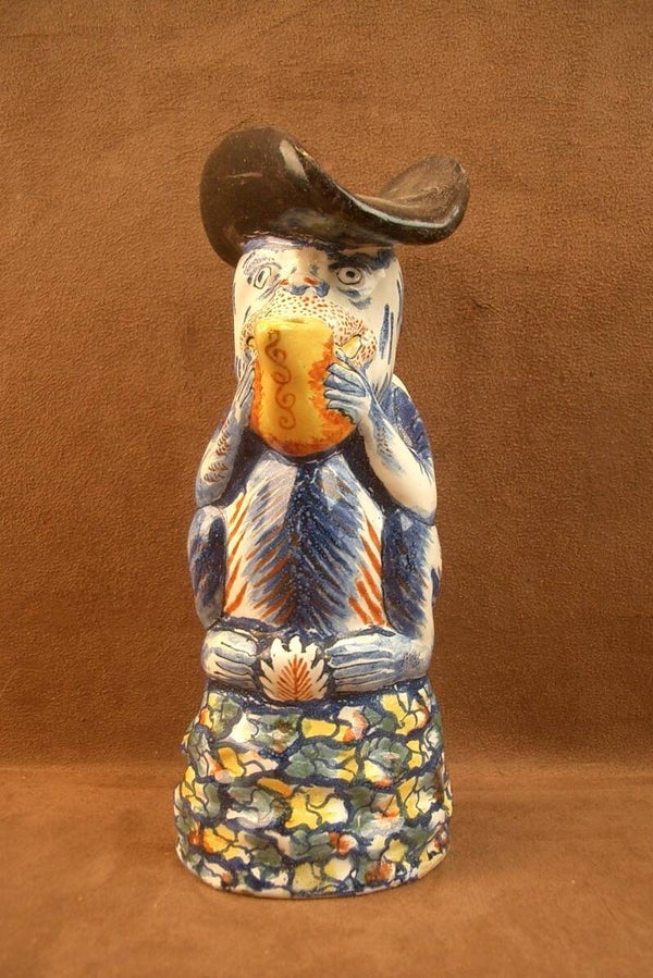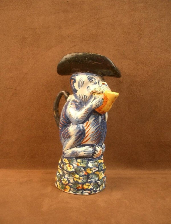 Verseuse à lait en forme de singe en faïence de Delft polychrome XIXe siècle