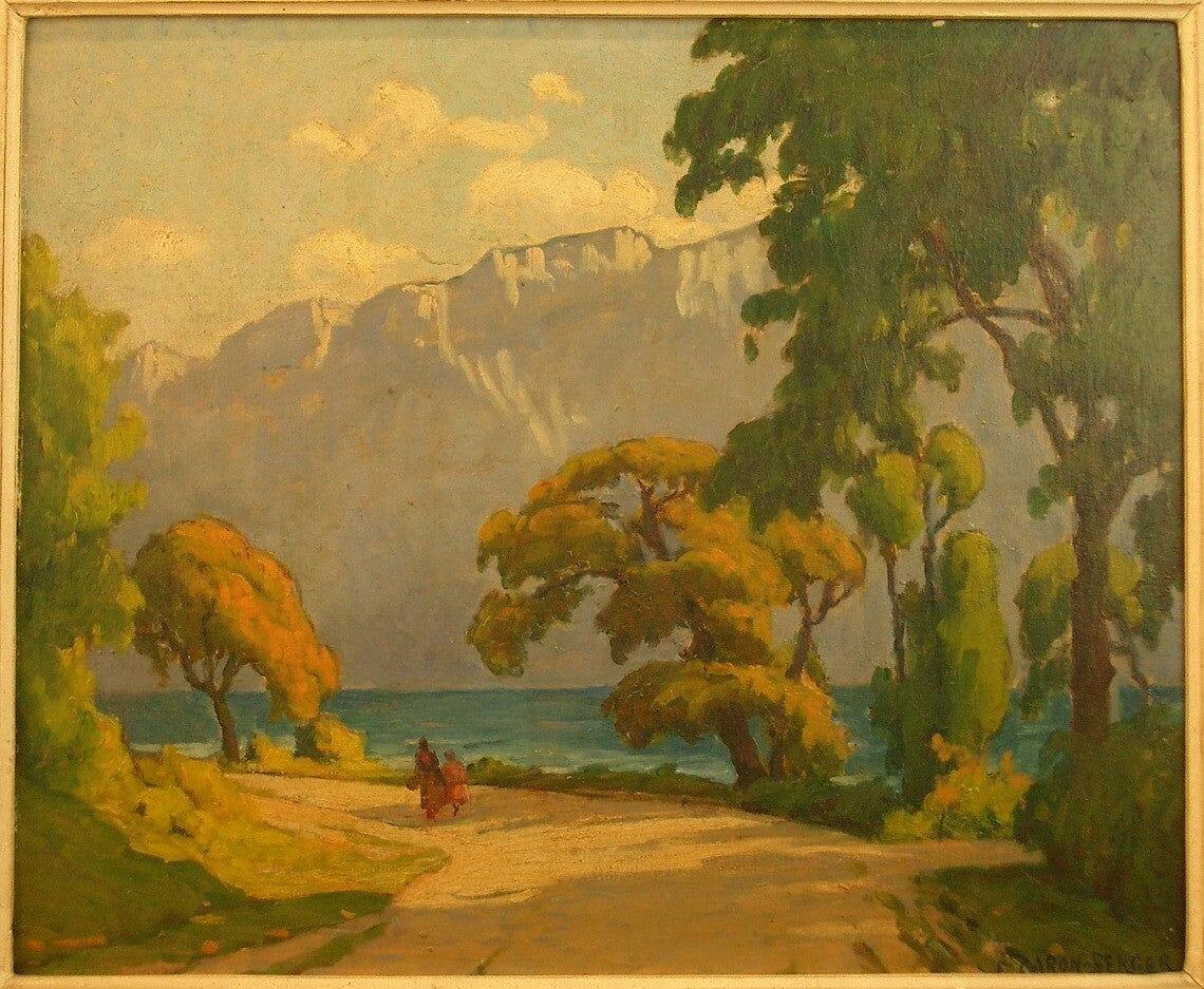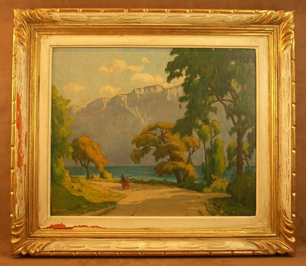 Peinture Huile Lac d'Aiguebelette signée Eugénie CARON-BERGER (1883-1963)
