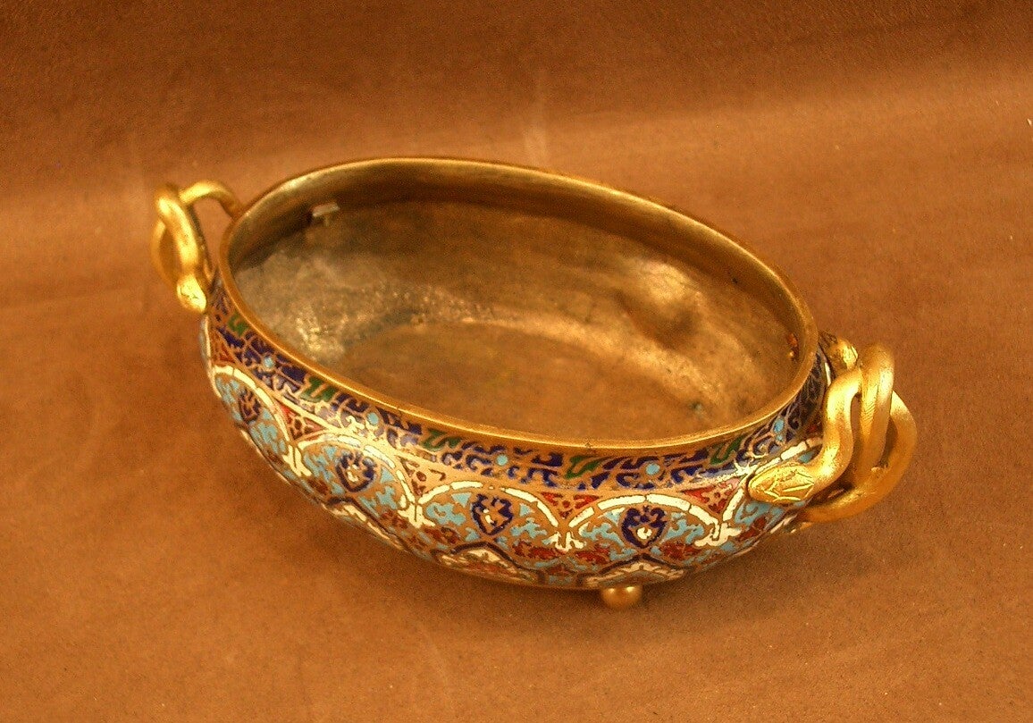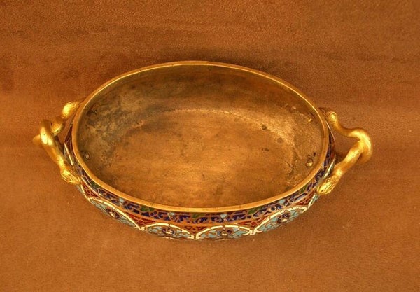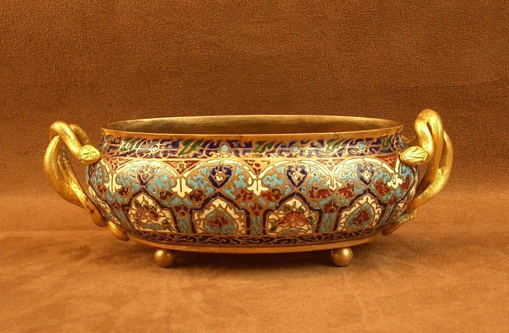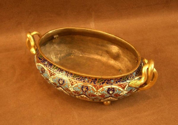 Coupe, petite jardinière en bronze et émail cloisonné XIXe siècle