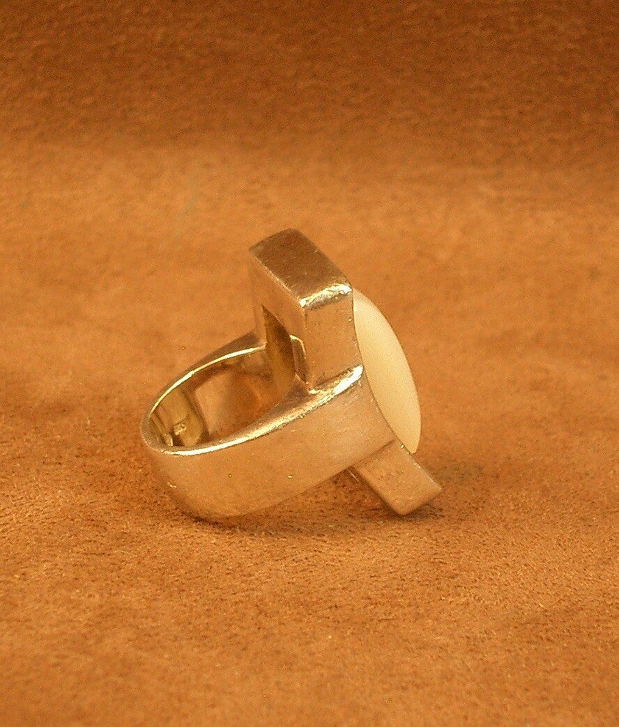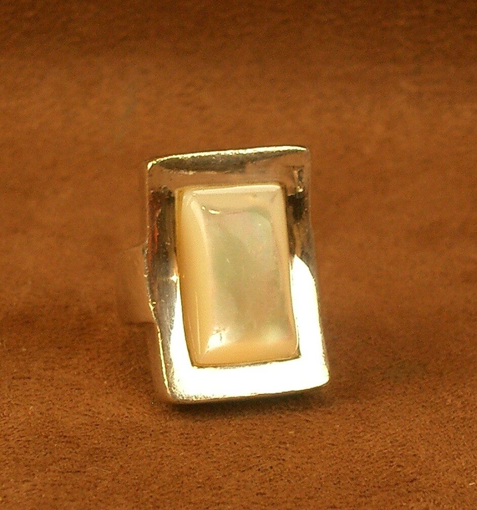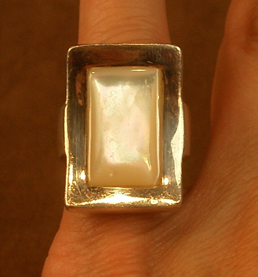 Importante Bague vintage en argent massif et cabochon de nacre