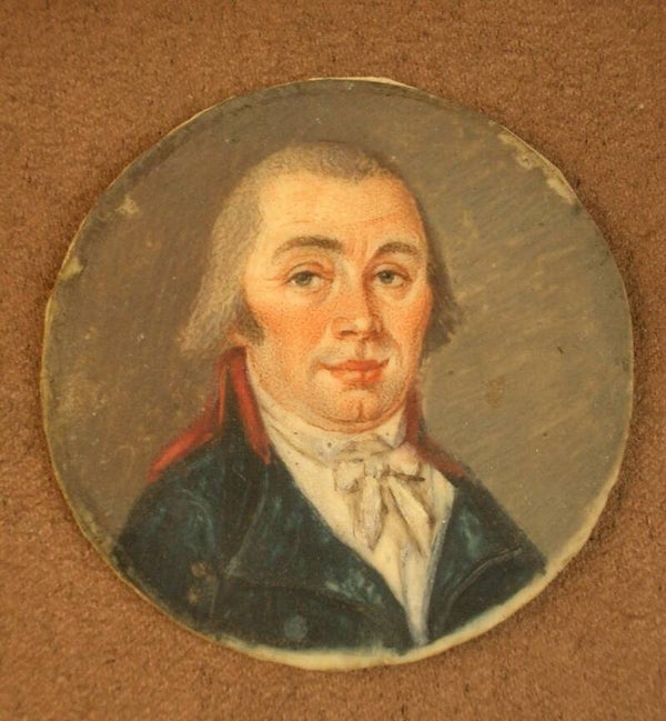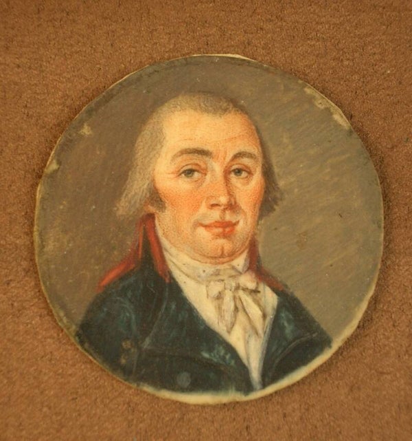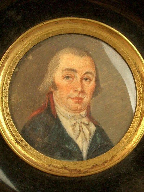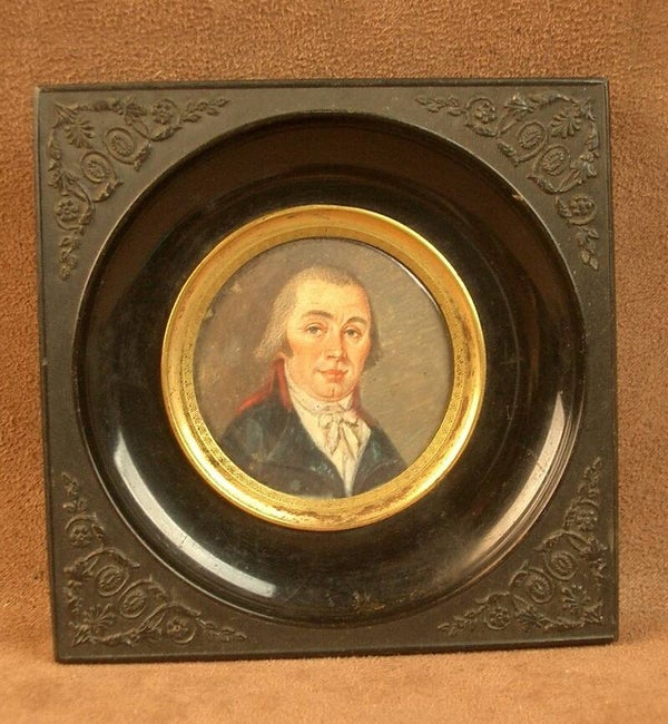 Peinture portrait d'homme miniature,dans son cadre en ébonite XIXe siècle