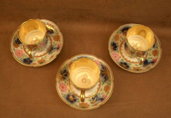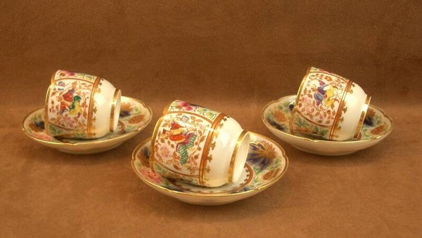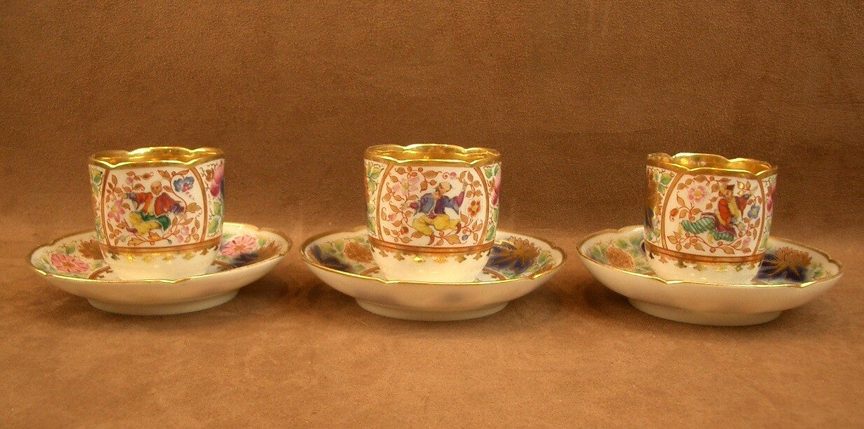 Ensemble de 3 tasses et leur sous-tasse en porcelaine de Bayeux , décor au chinois XIXe siècle