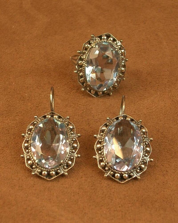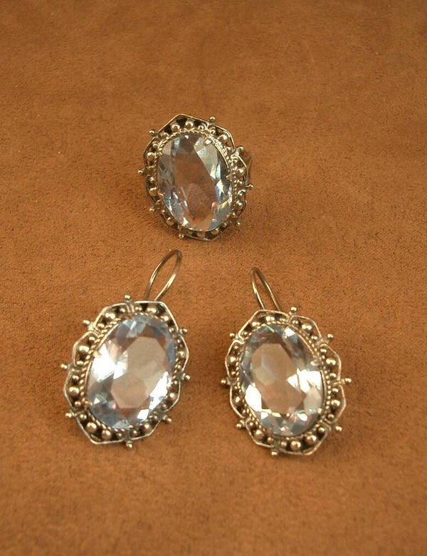 Belle demie parure de bijoux bague + Boucles d'oreille en argent