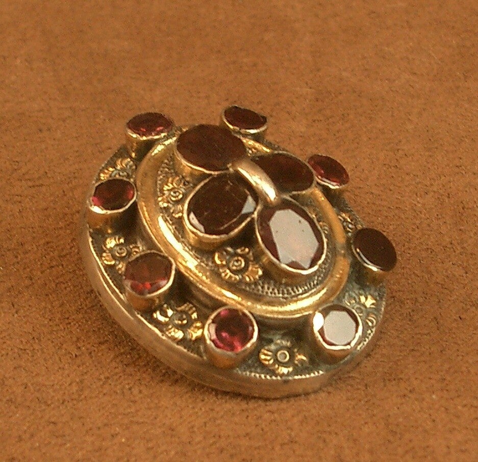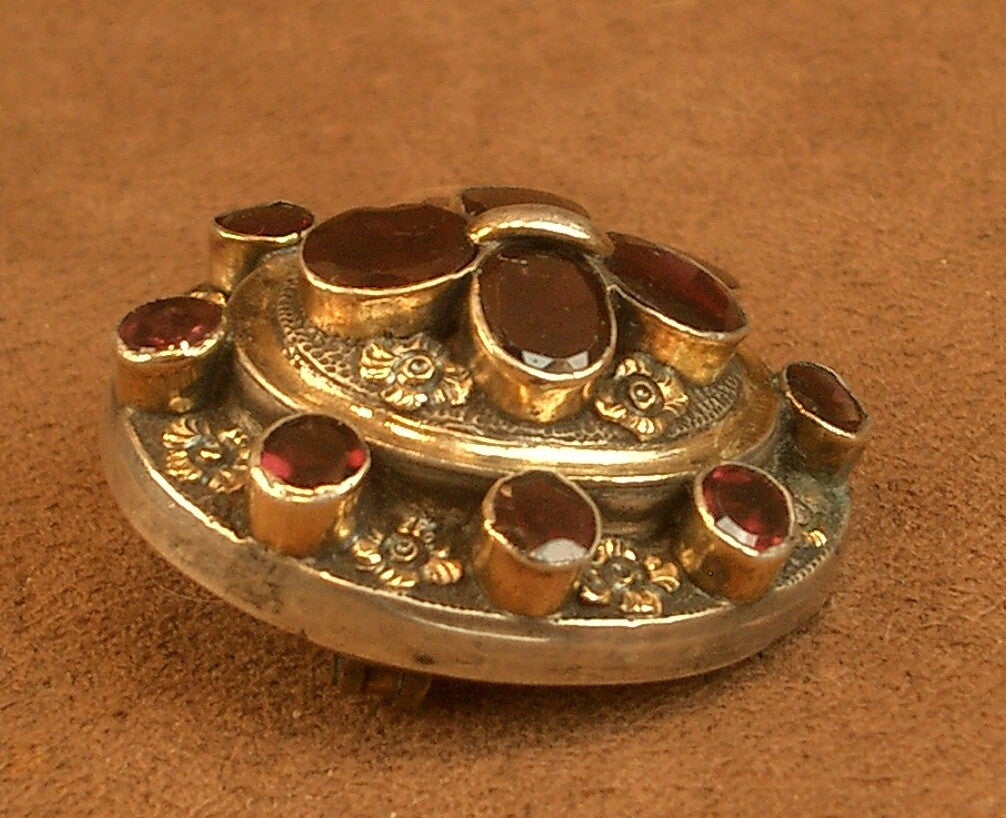 Belle Broche ancienne du XIXe siècle en argent et vermeil sertie de grenat