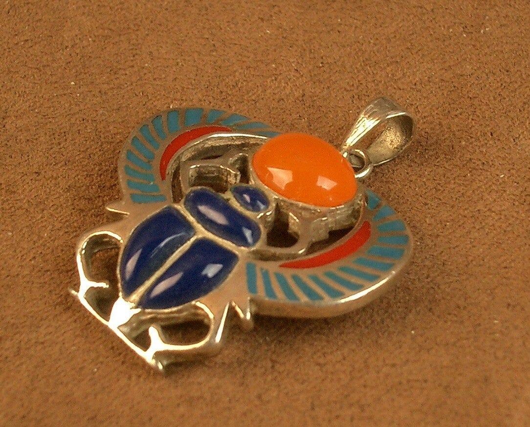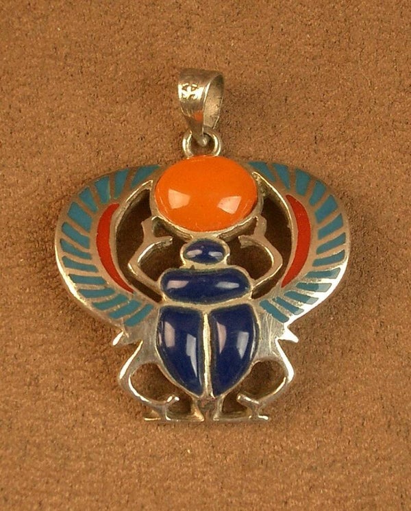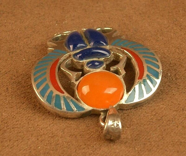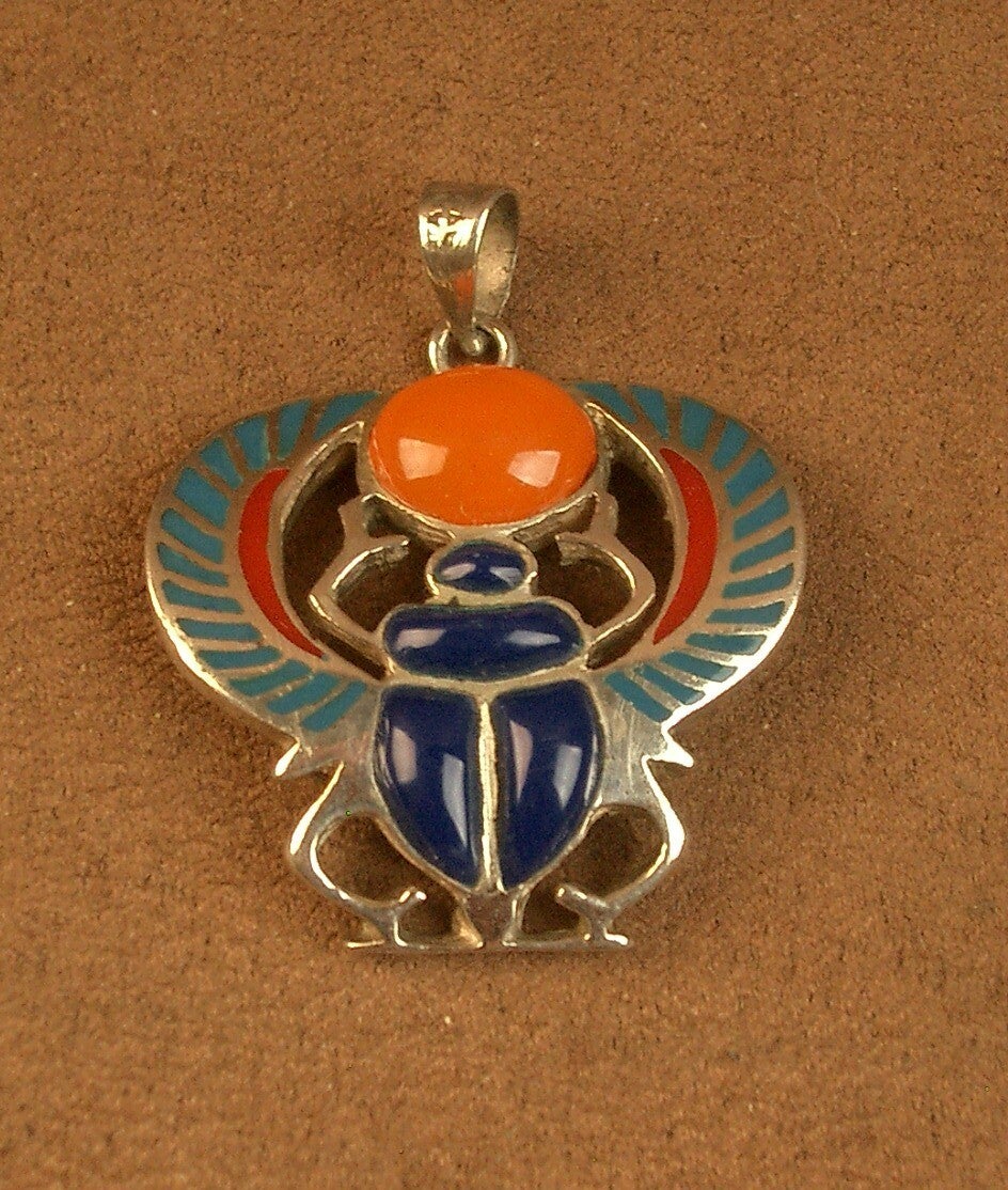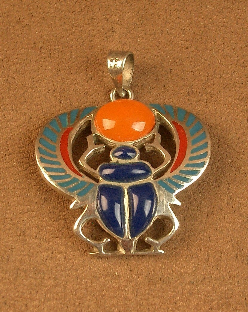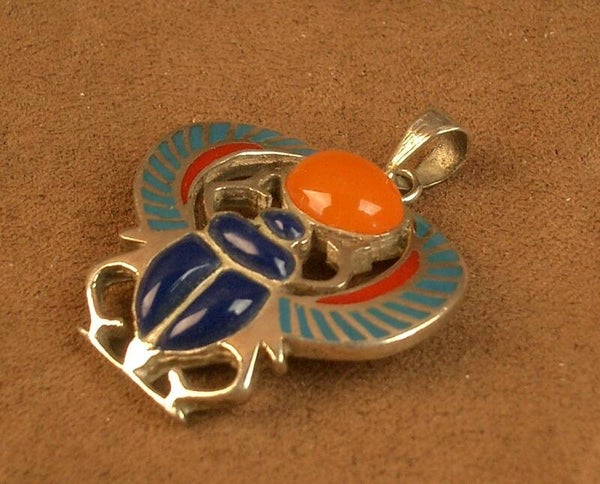 Pendentif scarabée en argent émaillé et cornaline