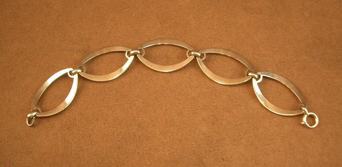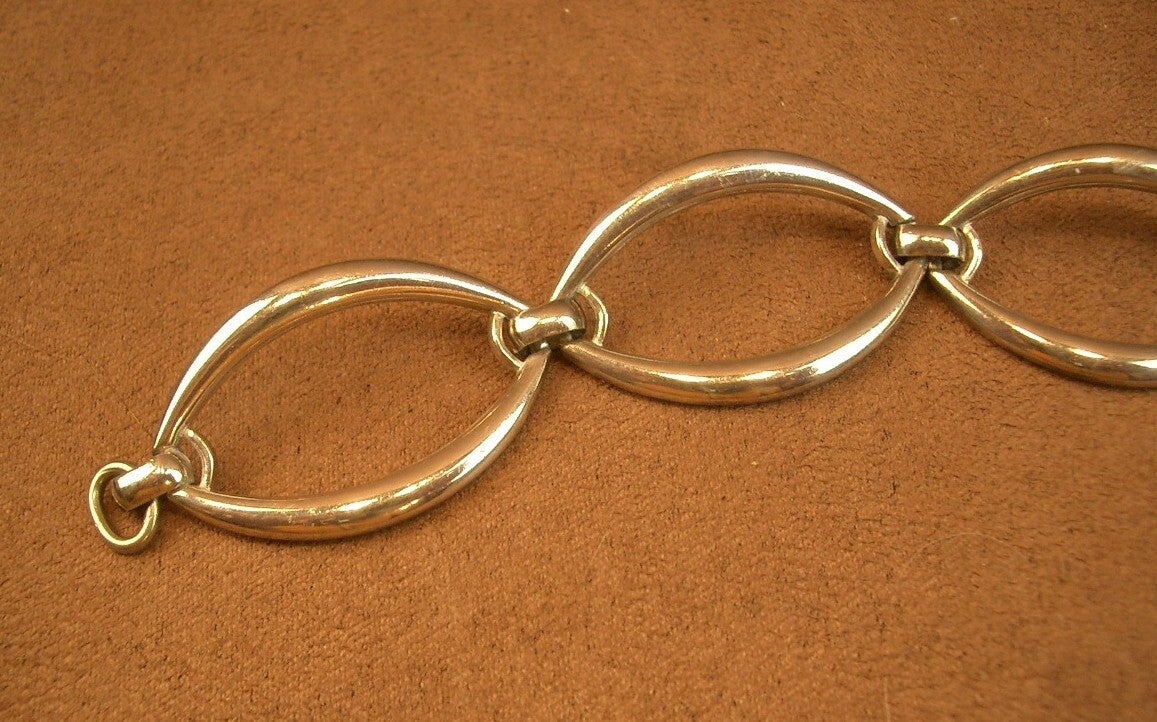 Bracelet vintage en argent massif large maille ovale