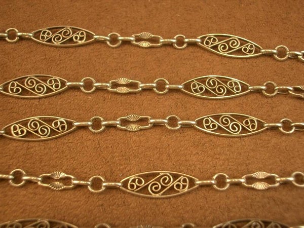Bel ancien long collier sautoir en argent