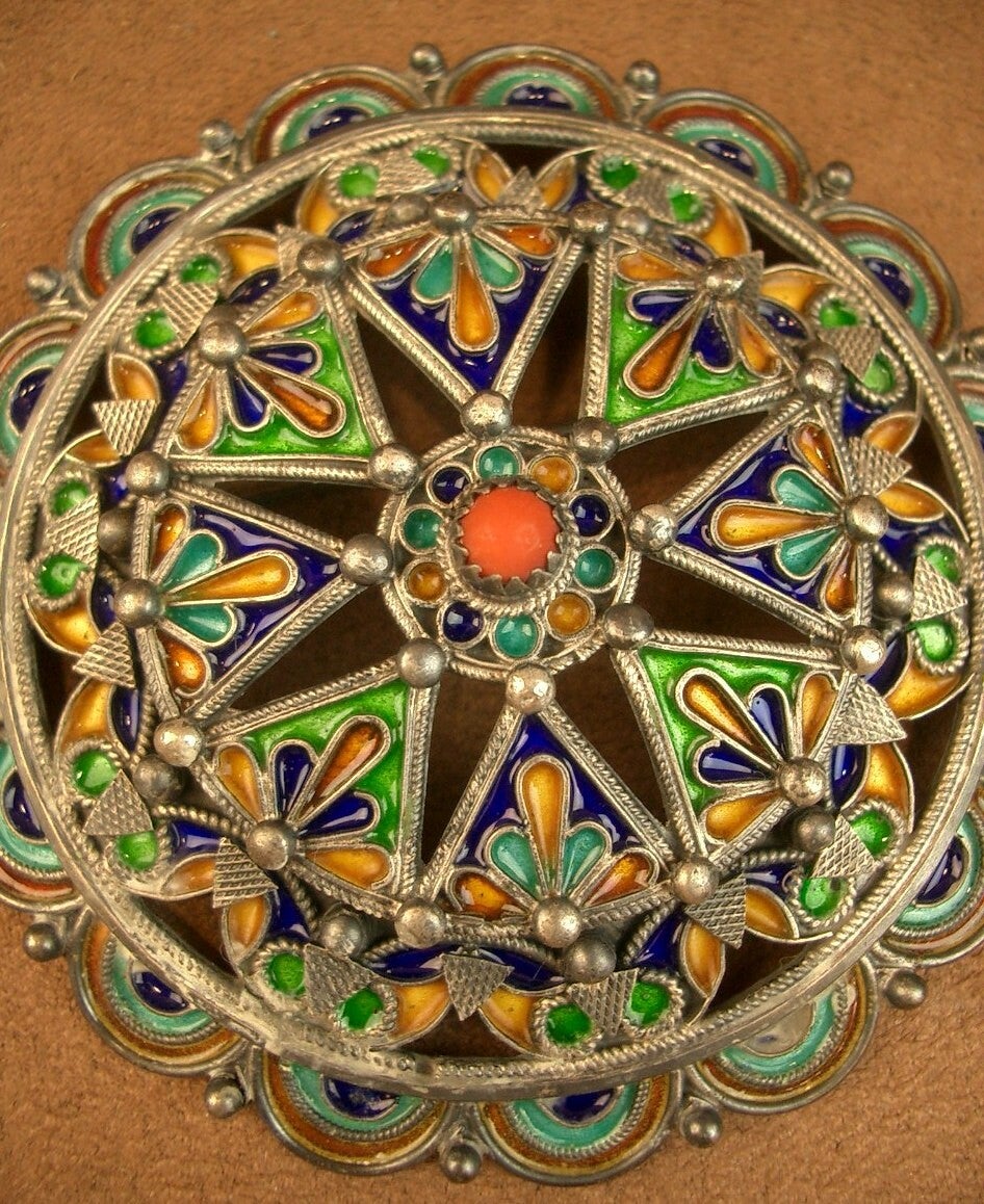 Important bijou broche pendentif berbere Kabyle argent émail et corail