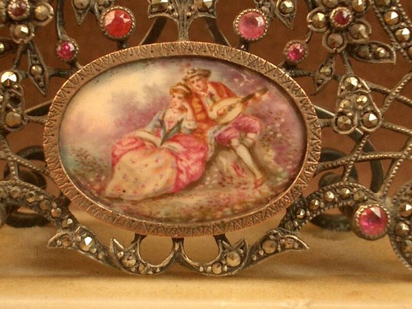 Très richement ouvragée , sertie de pierres roses et de marcassites