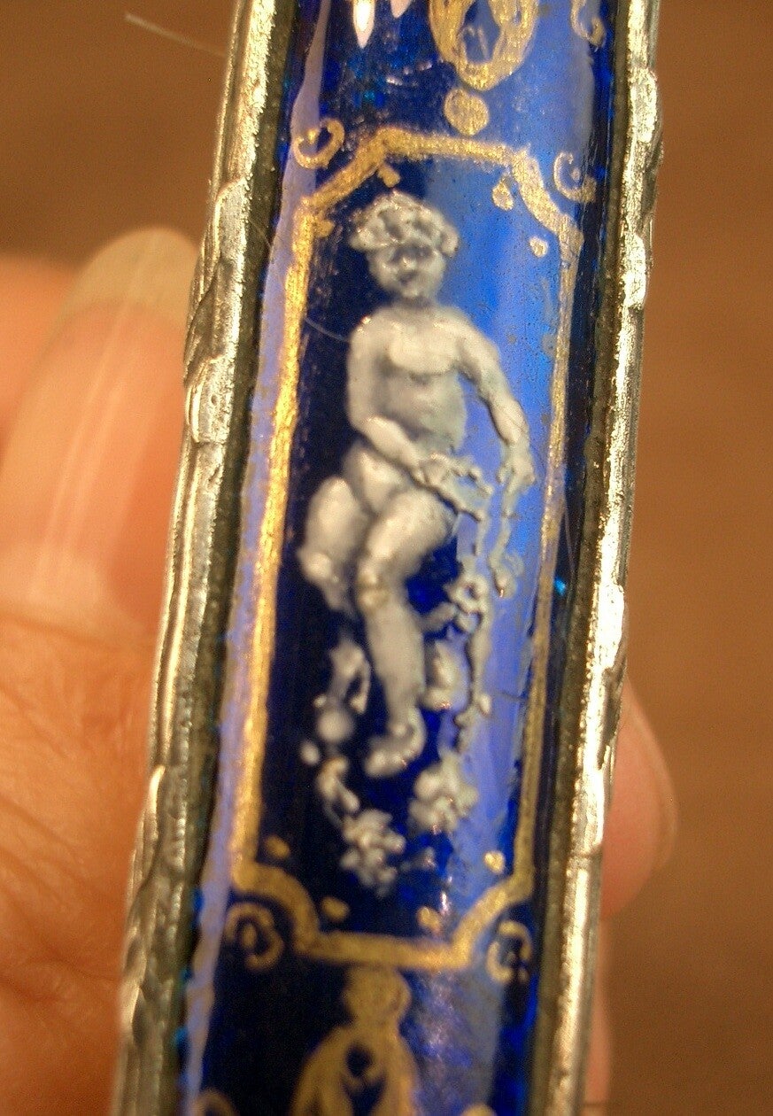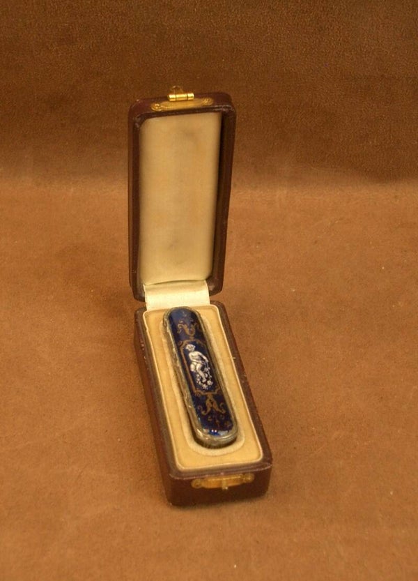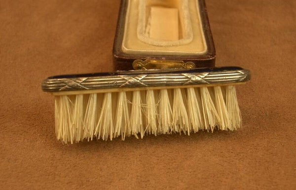 Superbe ancienne brosse a moustache monture en argent émaillée