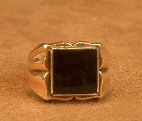 Bague ancienne chevalière Art Deco or et argent et Onyx